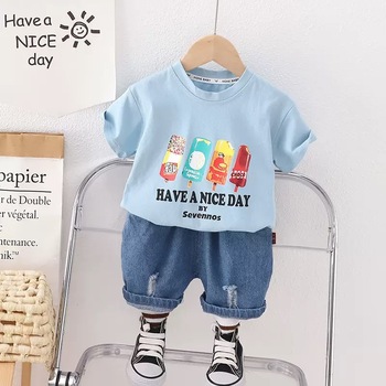 Toplu toptan çocuk çocuk takım elbise erkek kısa kollu karikatür tasarım T-shirt yaz rahat çocuk çocuk giysileri düşük fiyat